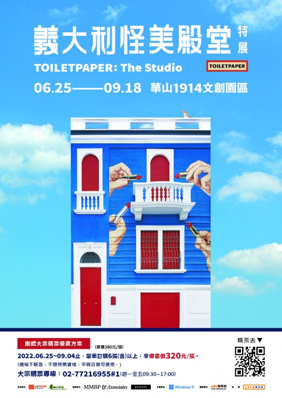(一)說明:由義大利藝術家莫瑞吉奧・卡特蘭與時尚攝影大 師皮耶波羅・法拉利於聯手創立的TOILETPAPER Magazine,善於翻玩觀念藝術的獨立攝影雜誌,將超現 實主義現成物進行拼貼、重組,內容充滿另類的諷諭美 學,看似平凡卻荒謬,它已不僅僅是本雜誌,更該說是 時尚指標,是當代藝術的另一種延伸。而本次展覽便是 將平面雜誌內容化為實體空間!從傢俱延伸至餐具、壁 紙到覆蓋整個展場,創作出充滿巧思與繽紛絢麗的夢幻 空間,義大利怪美殿堂不僅僅只是藝術特展,更是奇幻 超現實的視覺饗宴!敬請把握大宗優惠最後購票機會, 揪怪美好友們一同朝聖!