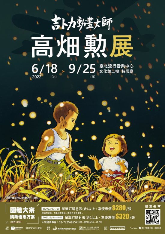 (一)說明:由東京國立近代美術館和吉卜力工作室共同策劃 的高畑勲展,開展至今佳評如潮,為今年暑假最受歡迎 人氣特展!高畑勲,對於日本的動畫發展具有極重要地 位的動畫大師;1985年與宮崎駿、鈴木敏夫共同創辦了 「吉卜力工作室」,自此牽動日本動畫半世紀的發展, 並一舉躍進國際舞台。本次特展展件高達2,000件,完整 呈現高畑勲導演對日本動畫的影響力及與吉卜力工作室 密不可分的關係。展覽期間還有吉卜力商店快閃北流, 包括展覽限定周邊、精選日本熱銷商品,挑戰你的荷 包,另有多項互動拍照區,一起穿梭吉卜力動畫世界、 感受最強魅力~敬請把握最後的大宗購票優惠!