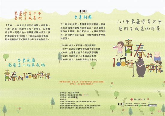 六、 | 檢附「111年東臺灣青少年藝術育成基地計畫」宣傳摺頁電子檔供參考。 |