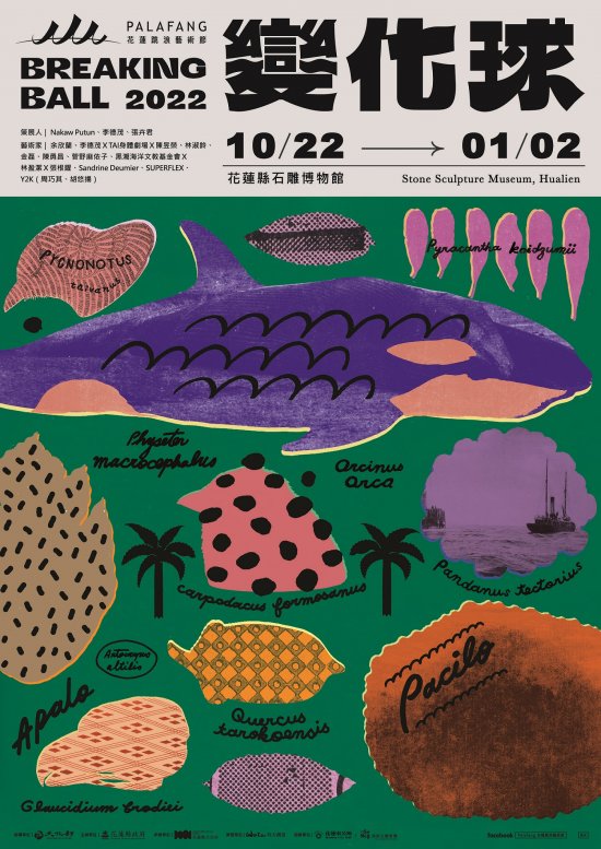 二、 | 本活動以「花蓮當代藝術」為展示基調,並以「地方學」為策展核心概念,每一屆持續以視覺藝術展演形式建構花蓮當代藝術史之紋理脈絡。今年辦理第二屆主題定為「變化球」,由三位策展人Nakaw Putun、李德茂、張卉君領軍,邀請余欣蘭、林淑鈴、金磊、陳勇昌、菅野麻依子、黑潮海洋文教基金會X林盈潔X張根耀、Sandrine Deumier、SUPERFLEX、李德茂X TAI身體劇場X陳昱榮、Y2K(周巧其、胡悠揚)等10組藝術家共同展出。 |