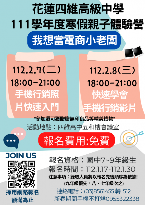 四、 | 參加人員:9年級親子優先,其餘次之。 |