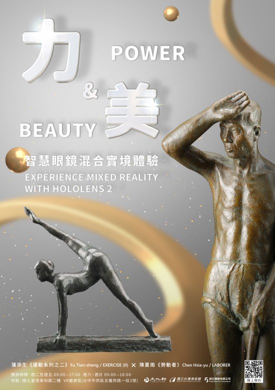二、 | 國立臺灣美術館首檔MR智慧眼鏡導覽服務「力與美—智慧眼鏡混合實境體驗」,展示臺灣前輩藝術家蒲添生受到奧運女子體操運動所引發靈感的《運動系列之二》,以及陳夏雨傳達勞動階層生命力所創作的《勞動者》等2件作品。運用3D全視角模型、真人動態捕捉等技術,以Hololens2智慧眼鏡呈現雕塑作品活化後的動態展演。歡迎至國立臺灣美術館官網預約體驗https://artvr.ntmofa.gov.tw/。 |
