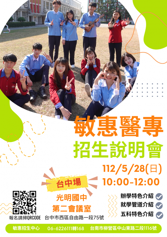 一、 | 本校為五專醫護類學校, 設有「護理科」、「幼兒保育科 、「美容保健科」、「牙體技術科」、「長期照顧與健康促進管理科」,為提供貴校學生及家長了解五專入學管道及升學醫護類科之未來發展。 |