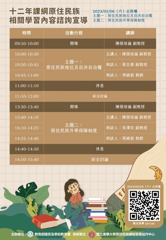 五、 | 若有相關活動需求或任何疑問逕洽國立東華大學原住民族課程發展協作中心專任助理張雅茹小姐(03)8905782/lulay@gms.ndhu.edu.tw。 |