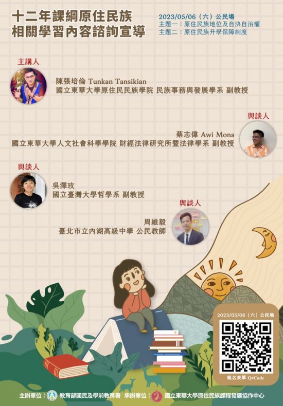 二、 | 因應十二年國教新課綱正式實施,為解決第一線教師及學校單位面臨落實新課綱中與原住民族相關規範之挑戰,故規劃辦理相關推廣活動,以利各級學校單位落實新課綱原住民族具體相關規範。 |