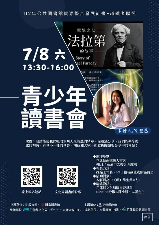 (八) | 活動聯絡人:活動詳情請洽本局圖書資訊科03-8227121分機153陳小姐、156張先生。 |