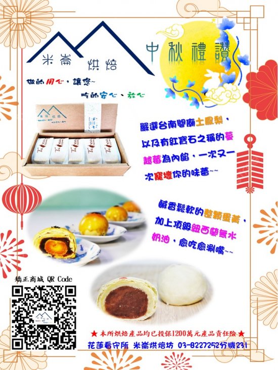 一、 為慶祝中秋佳節,本所食品科特推出精心製作之蛋黃酥(整顆鹹蛋黃)、土鳳梨酥、蔓越莓酥、原味鳳梨酥及紅(綠)豆椪等精美禮盒,保證無添加物、不含防腐劑,讓您吃得安心,送禮自用兩相宜。